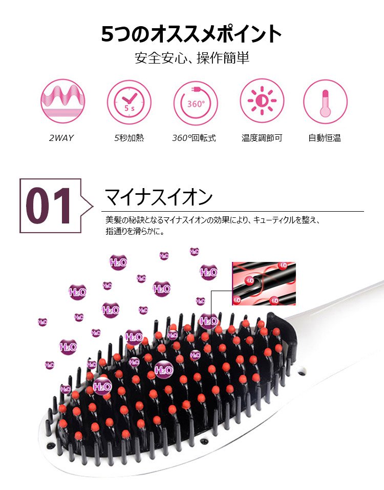 【高機能ブラシ型ヘアアイロン】ストレート ブラシ型 電気ブラシ ヘアケア 寝癖 縮毛矯正